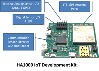 A good example of an acceleration kit is the HA1000 IoT Developer Kit from HAE Innovations, which offers developers the ability to get their products to market faster. The kit includes MCU, modem hardware, expandable sensor printed circuit board (PCB) with gerber files available, and pre-installed application software to manage the sensor, bootloader and network communication process. There is also an optional Secure Cloud Service available for those interested in remote device management. This includes user account management, alarms, such as email, text, audio calls, and OTA application updates.