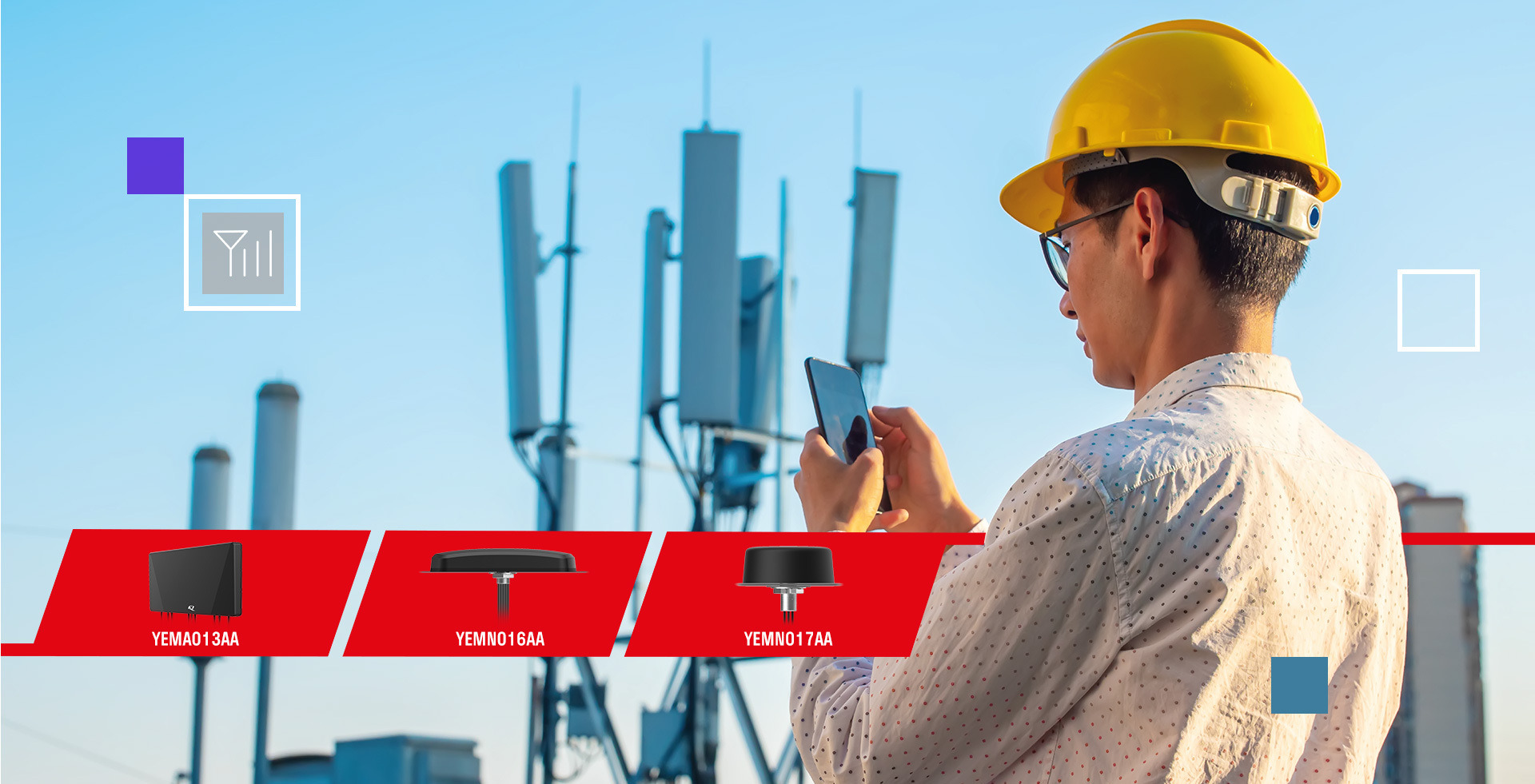 • YEMA013AA – a 9-in-1 adhesive mount flat, rectangular combo antenna